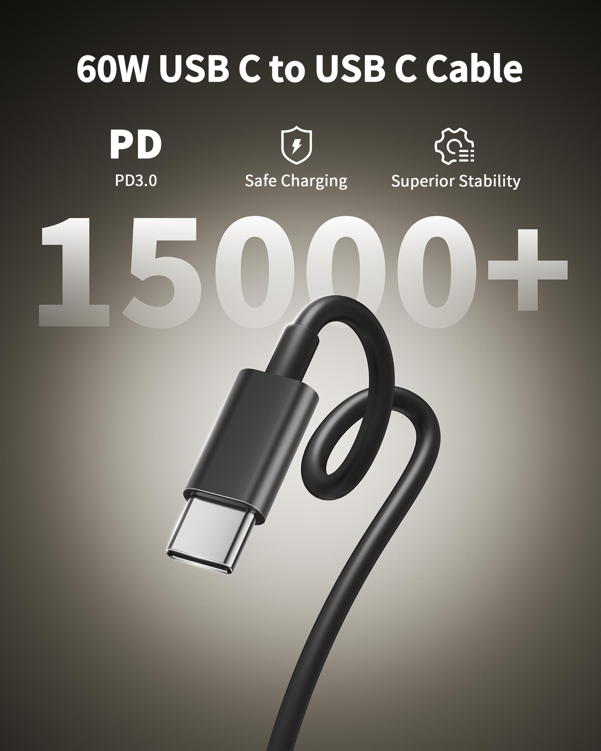 This USB-C cable supports PD3.0 fast charging with a maximum output power of 60W (20V/3A) and data transfer speed of up to 480Mbps. It convenient for you to charge from a distance on the sofa, in the bedroom, in the office, or even while playing entertainment videos and games