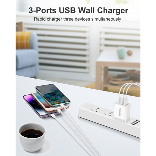 --3-Port Design: allows you to charger 3 mobile devices simultaneously at high speed.