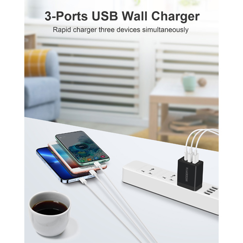 --3-Port Design: allows you to charger 3 mobile devices simultaneously at high speed.