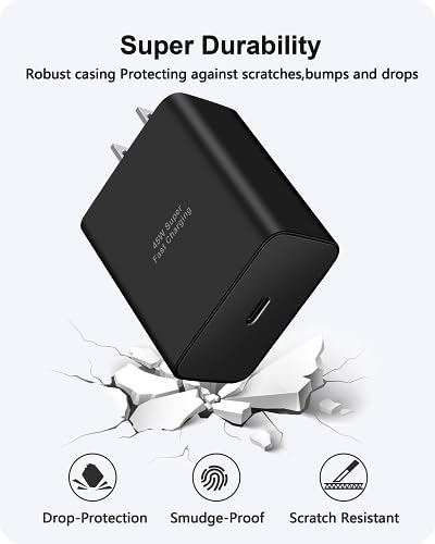 [45W Samsung Fast Charger] USB C charger block equipped with PD 3.0 fast charging technology, provide max 45W output power. Fast charge your Samsung Galaxy S24 / S23 / S22 Ultra up to 50% in just 20 minutes, 3X Faster than your 15W old charger. [Wide Compatibility] 45W Type C super fast charger compatible with Samsung Galaxy S24, S24+, S24 Ultra, S23, S23+, S23 Ultra, S22, S22+, S22 Ultra, S21, S21+, S21 Ultra, S21 FE, S20, S20+, S20 Ultra, S20 FE 5G, S10, S9, S8 Plus, Note 20 Ultra, Note 20, Note 10, Z Flip5, Z Fold5, Z Fold4, Z Flip4, A71, A73, A80, A90, A54, A53, A52, A23, Galaxy Tab S9, S9+, S8, S8+, W23 Flip, W23, W22, Google Pixel 8 7 6 Pro 5 4 XL, LG G8 G7 G6 V50 V40 V30, Moto, Android Phones and more. [Superior Safety] This Samsung Galaxy S24/S23 charger built-in multiple safety protection systems to protect your device against short circuits, over-current, overcharge and overheating issues. Smart IC chips can automatically identify and detect the type of phone and battery status, automatically stop charging when the battery is fully charged to ensure the safety of your device. [10FT Extra Long USB C Cable] The Android phone charger cable supports 60W/3A fast charging and up to 480Mbps data sync transfer speed. 10FT ultra-long design, providing longer charging distance, convenient for you to use phone charging in the sofa, bedroom, office. Use nylon braided jacket designed to ensures that the internal metal parts will not break, 20000+ bending test, stronger durability and longer service life. [What You Get] 2-Pack 45W Super Fast Wall Charger Type C Charging Block, 2-Pack 10FT Nylon-Braided USB C to USB C Cable Long Android Phone Charger Cord. Report an issue with this product Trade-in your old phone and get a gift card for your next purchase: You are leaving the Amazon.ca site and headed to another company. Click here to continue.
